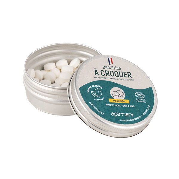 Les ingrédients qui le composent sont uniquement sains et naturels. Sa dose de fluor de 1450 ppm protégera et renforcera l'émail de vos dents. Cerise sur le gâteau, il est maintenant certifié bio. Une véritable alternative écologique permettant de réduire au maximum le plastique de votre salle de bain. Bref, vous avez devant vous le futur du dentifrice. Chaque pastille correspondant à un brossage.