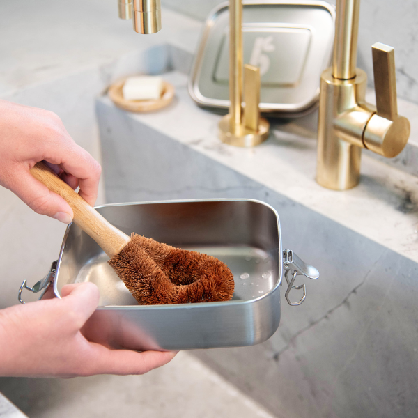 La brosse à vaisselle est composée d'un manche en bambou, de poils de noix de coco et d'acier inoxydable. Elle est dotée d'une tête courbée de forme ronde, conçue pour atteindre facilement toutes les zones. La haute densité des poils de noix de coco permet un nettoyage en profondeur. Le manche en bambou a une forme ergonomique pour une prise en main ferme et confortable.