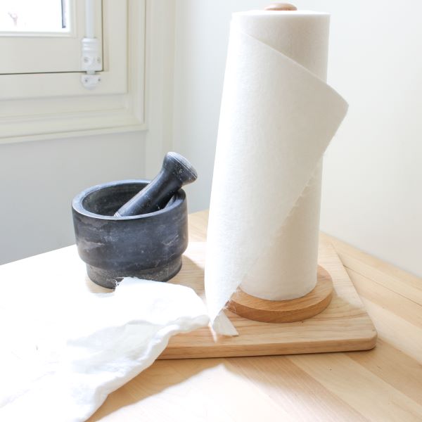 Un rouleau d'essuie-tout en bambou de Bambaw possède 20 feuilles et équivaut à 65 rouleaux à usage unique. Cet essuie-tout en bambou est plus absorbant que les rouleaux à usage unique, permettant ainsi un nettoyage plus efficace. Vous pouvez l'utiliser pour nettoyer tout type de surface sans effort. Chaque feuille réutilisable est extrêmement solide grâce à son épaisseur et à la solidité naturelle du bambou. L'essuie-tout est lavable en machine.