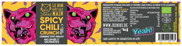 Lorsque le piquant agréable du piment, du gingembre et du poivre du Sichuan rencontre l'anis étoilé, la cardamome et la cannelle et est finalement complété par le croquant de la cacahuète, il ne peut s'agir que de notre Chili crunch biologique ! Croustillant, épicé et délicieux, il s'avère être un véritable multitalent et s'emploie pour mariner la viande, comme pesto ou pour assaisonner diverses soupes et plats de riz. Ajoute simplement du croquant relevé à tous vos plats! En apéro sur des tranches de chèvre frais par exemple...