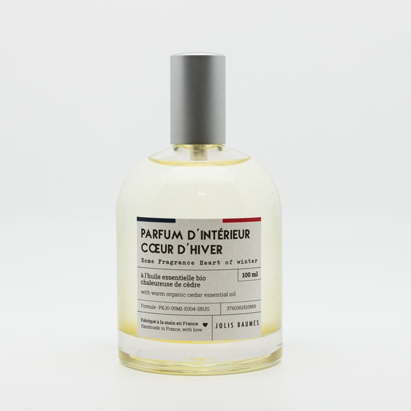 Le parfum d'intérieur Cœur d'hiver fait partie de la gamme de 9 parfums d'intérieur bien-être de Jolis Baumes. Ils sont fabriqués à la main, de façon artisanale dans notre atelier en Auvergne. Nos parfums d'ambiance sont formulés avec amour à base d'ingrédients naturels.