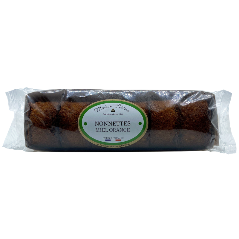 Miel de fleurs 48% BIO, farine de BLE de France BIO, sucre de canne BIO équitable, purée d'orange BIO 9 %, OEUFS entiers de France BIO, poudres à lever : bicarbonates de sodium et d'ammonium, jus de citron à base de concentré BIO, pectine, épices BIO, huile essentielle d'orange BIO.